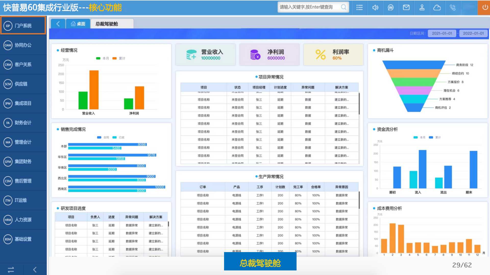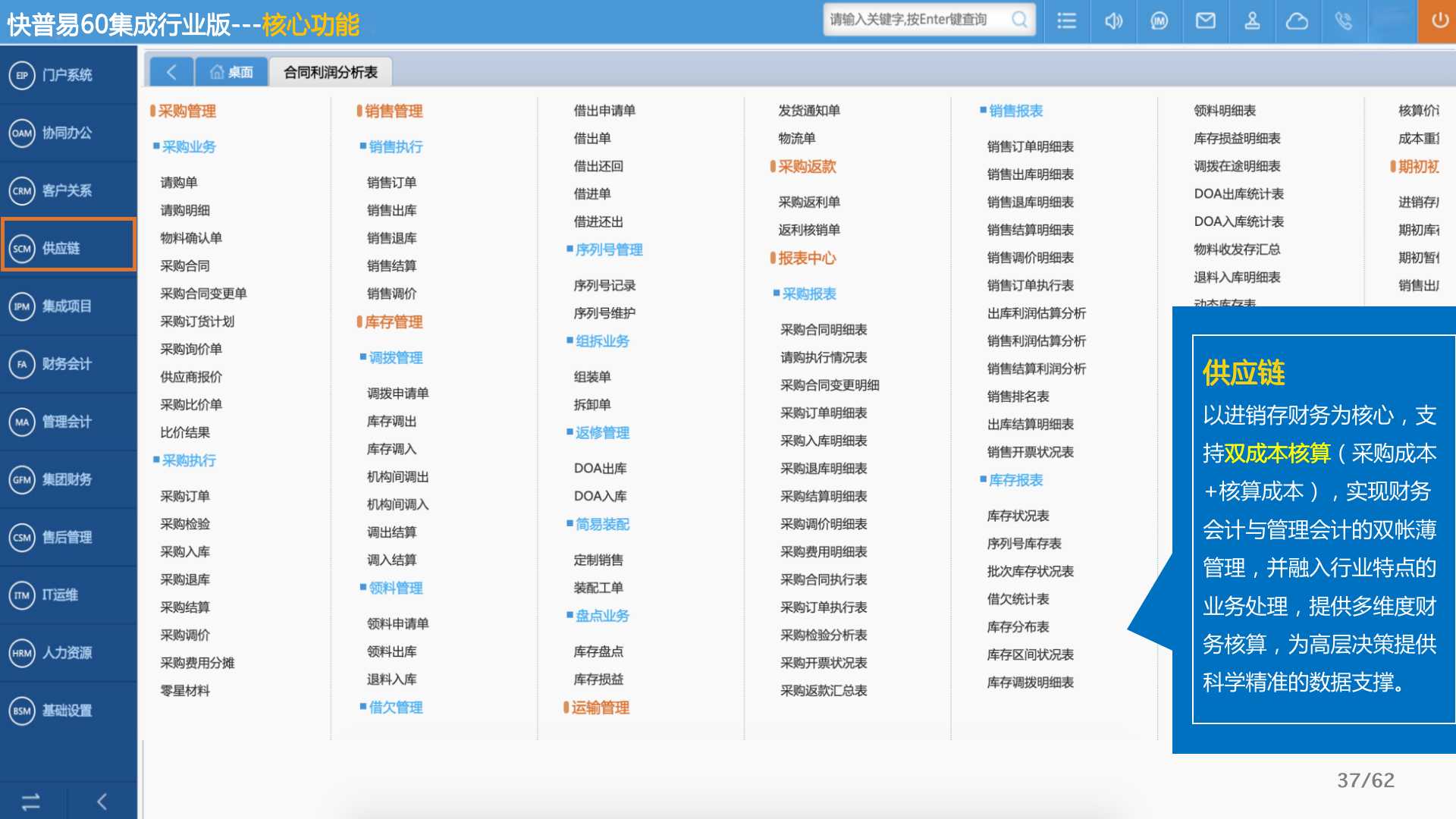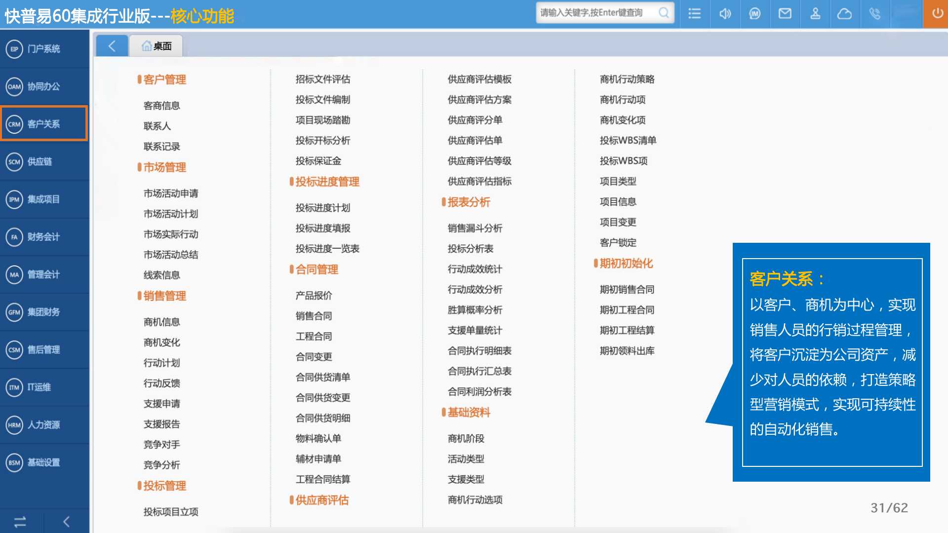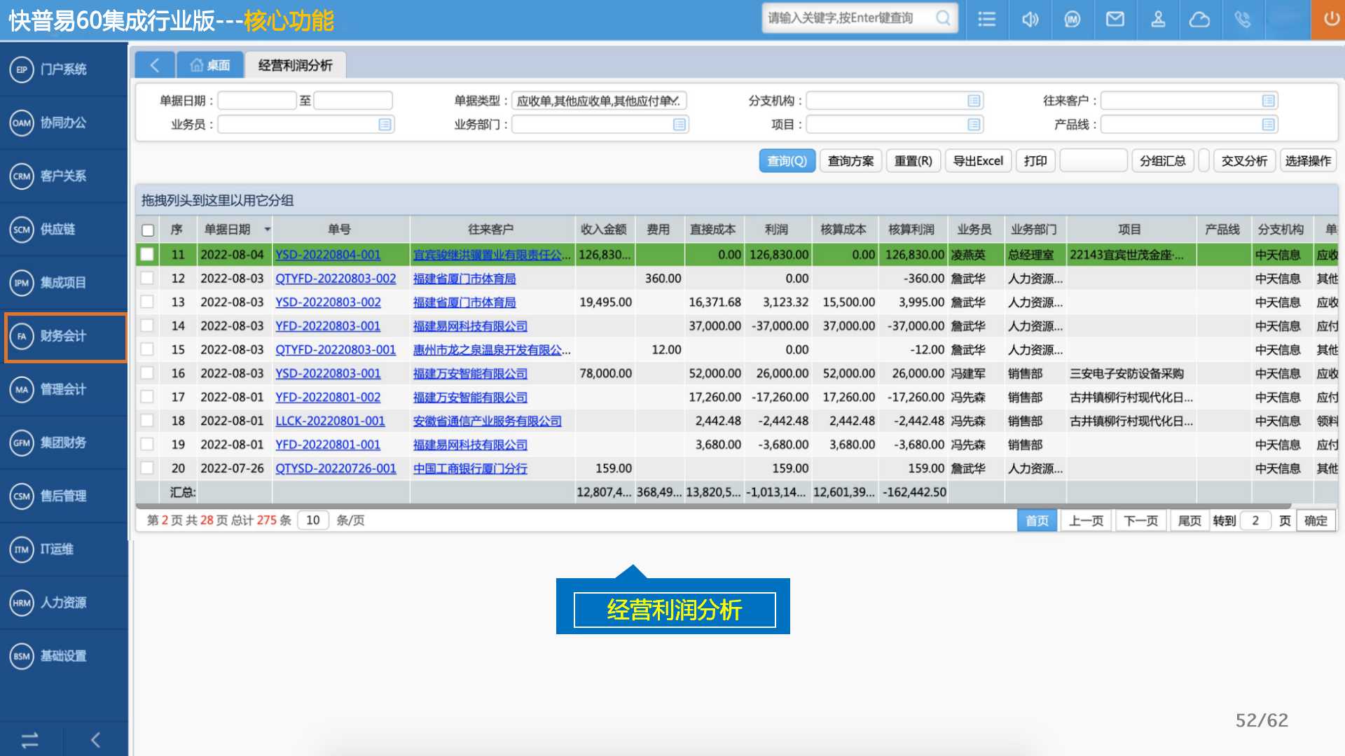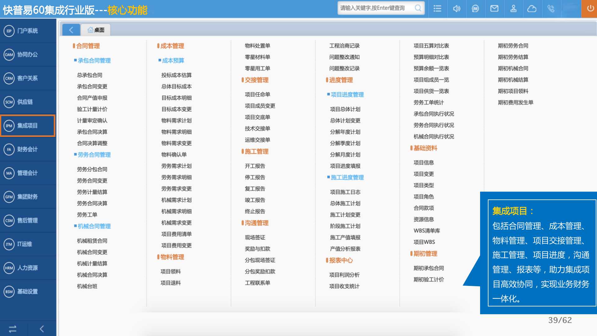 快普易60以客戶為目標、以項目為核心,為集成行業(yè)提供數字化管理解決方案,為組織和業(yè)務提效,實現(xiàn)項目全過程管控,有效控制成本,并按項目自動進行內部核算,提升項目的盈利能力,為企業(yè)打造可持續(xù)發(fā)展的經營模式。