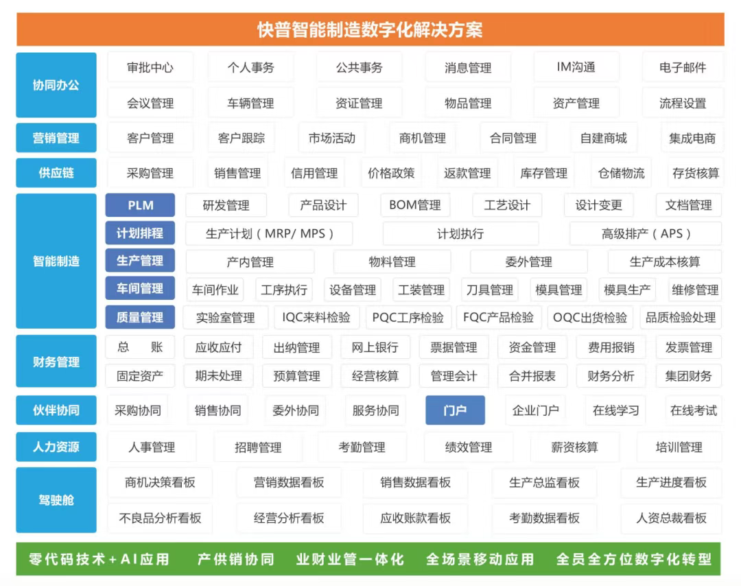 該項目通過快普易整合管理平臺全面替換原有生產(chǎn)、財務(wù)、OA等多套分散系統(tǒng),徹底打通“信息孤島”,構(gòu)建起覆蓋“人材機、產(chǎn)供銷、業(yè)財管”的一體化數(shù)智平臺。